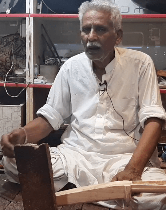 Ziauddin (b. 1945) is a sitar-maker who was born in British India. He is the son of the famous sitar-maker Ustad Sher Muhammad Khan Sahib, who taught him how to make instruments when he was in fifth grade. Amongst his father’s students, Rikhi Ram, who supplied sitars to the Beatles, features perhaps most prominently. Ziauddin’s ancestors used to make sword sheaths in Mughal times, and later on, shifted to instrument making. He has made instruments for Ustad Sharif Khan Poonchawaley, Ustad Kabir Khan, and Ustad Nafees Ahmed Khan, who are all world-famous sitarists. One of his sons, Muhammad Kashan, works along with him. He runs his father’s shop, and makes a wide variety of stringed instruments by hand.