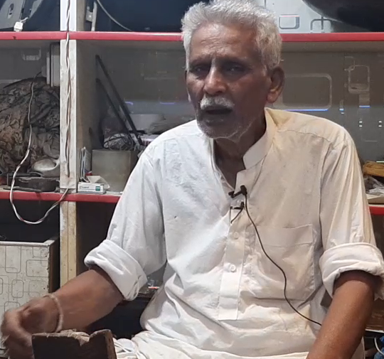 When asked if he has any students, he tells us that he has taught sitar making to no one except for one of his sons, Muhammad Kashan, and that no-one else other than him is currently carrying on the family legacy. His other children work in various firms and companies and help financially support him. He did not encourage them to pursue his profession, as he believes that there is no financial security in it.